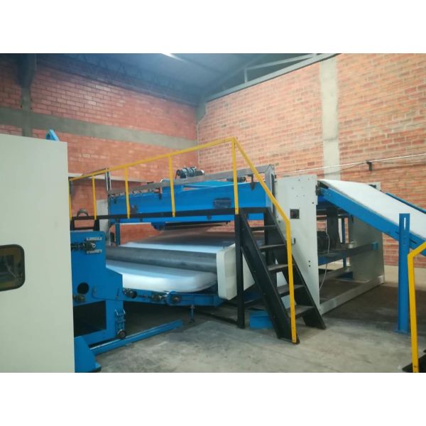 After carding, fiber net is sent to double-belts cross lapper through the non-skid curtain, it will be layered on the downside curtain, then sent to next equipment by adjustable moving curtain.
